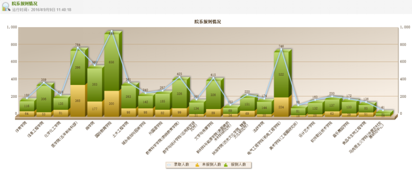 图2 院系报到情况图表(截图时间:2016.9.9 11:40)