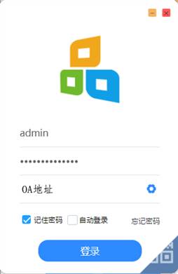 安装完成会打开出现下图左界面,在这个界面上点击地址栏右侧的小齿轮打开设置界面。在设置界面填写用户名、密码及OA地址(如果OA地址栏已有内容,请注意IP地址是否正确;请注意是否是https开头;是否网址输入时为英文输入法)。